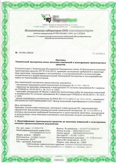 5. Следующий этап – протокол проверки ТС. Для оформления переоборудования газели придется вернуться в ту лабораторию, где владелец получал заключение экспертизы.
